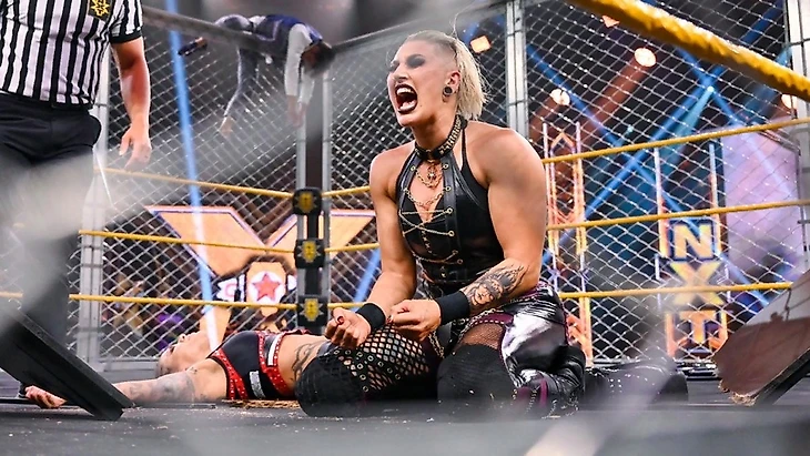 Также интересна фишка с отсылками на Fight Pit: исполнительницы не пытались искать легких путей, выбираясь из клетки, а дрались до победного. Это Рипли и Мерседес Мартинес в клетке, чего вы еще ждали?