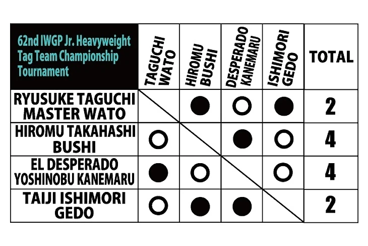 Рюске Тагучи и Мастера Вато против Bullet Club (Таиджи Ишимори и Гедо) - квалификационный командный поединок 3-го раунда и полуфинала турнира.