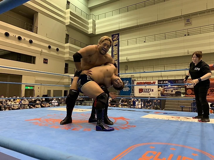 Поединок с весьма крупной историей прошлого, в которой эти двое были лихо связаны - сперва они были в качестве команды и имели даже титульный рейн как мировых командных чемпионов AJPW в 2018 году. Правда тогда это было меньше месяца, а учитывая их общую историю с 2017 года длиною в 4 поединка - для Йошитатсу было важно наконец-то хоть как-то одолеть главного мэйн-ивента нового поколения в истории AJPW. И главным фактором жажды победы для опытного Татсу именно его поражение перед Кенто в прошлом году - в финале Champion Carnival 2019. Так что по части сторителлинга и того же стиля King's Road нынешний бой запомнился именно той самой жадной борьбой ради победы. Плюс и Мияхаре данная победа была нужна - чисто чтобы отправить Йоши на предпенсию и через его голову пройти дальше, к Суваме. Рестлеры выложились как только они могли себе позволить - Татсу был андердогом, хотя ему удавалось выглядеть достаточно равным и не давать спуску Кенто, Мияхара же периодически флексил и в своей забавной харизматичной манере взаимодействовал с публикой. А уж его стычки с рефери-ветераном Кайе Вада так и вовсе заставляли улыбаться (где-то позавидовал немного Рэд Шуз). Но главное что реально удивило - так это результат боя, в который никто не мог поверить изначально...