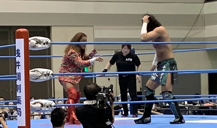 Вот этот матч вышел весьма интересный поединок, в котором уместилось очень многое - цикл вмешательств в начале боя, что помогло Ашино получить стартовое преимущество, андердог Аояги, которому пришлось несладко из-за действий Шотаро (а тот является невероятно сильным броулингом с нравом жесткого негодяя) и взаимный селлинг главных повреждений обоих бойцов. Ну и активное ин-ринг действие на 10 минут, в котором давние оппоненты отлично показали знание друг друга. А результат боя оказался весьма любопытным и сильным.