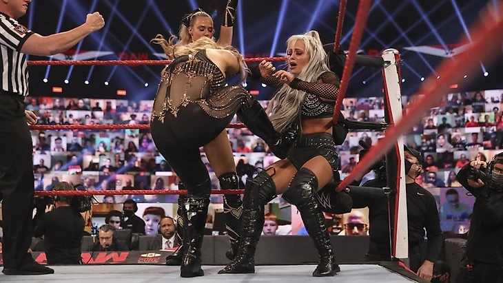 The Riott Squad (Руби Райотт и Лив Морган) против Натальи и Ланы.