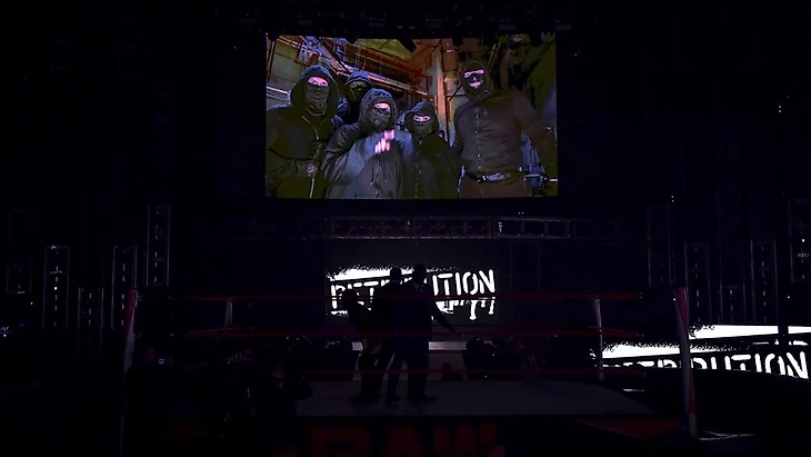 Крюс, ЭмВиПи, Бенджамин и Лэшли присутствовали на рингсайде. Начал Рикошет бой агрессивно, почти сразу получил ответочку в виде жесткого колена, и шарахнул жесткий бэк элбоу, после чего отправил противника за пределы ринга и шарахнул бут с апрона, добавив мунсолт с угла. Аполло же, завидев Бенджамина, готового вмешаться как-то в матч, срубил его своей атакой, тут же получив клоузлайн от Лэшли. От свидания с рингпостом Крюса спас появившийся Эрик, который в танце драки ушел с Бобби за кулисы. После рекламной паузы мы стали наблюдать, как Рикошет мучается в болевом. Достаточно долго Седрик доминировал, но его соперник не мог не вернуться в бой жестким дропкиком. Рикошет провел несколько жестких ударов, не сумел выйти на фулл нельсон и шарахнул суперкик. снэп дрэгон суплекс до 2 прошел, и Рик забрался на третий канат. Шелтон отвлек его, выиграв немного времени, поэтому шутинг стар пресс не прошел, и Рикошет нарвался на Мичиноку драйвер до 2. Тут же Александр добавил Lumbar Check, и это победа. Не успел Седрик отметить викторию, как свет погас, везде появились надписи Retribution, и они обратились к нам с титантрона. Они назвали себя результатом пустых обещаний, предательств и всего такого. Когда-то они доверяли, но сейчас их глаза широко раскрыты. Они видят, кем являются звезды WWE. Говном, короче, они считают рестлеров WWE. Потому что они преданы тем, кто относится к другим людям, как к мусору. Они продали свою душу продажной машине под названием WWE. Когда-то представители Retribution, как и остальные звезды WWE верили, что дорога из Подготовительного Центра приведет их к славе и достатку. Однако, они не захотели подчиняться режиму, который им не нравится. И теперь WWE остается наслаждаться своими последними днями перед забвением. Retribution покажут, кто они и на что способны. Свет врубился обратно, The Hurt Business были готовы защищаться, но ничего не произошло.