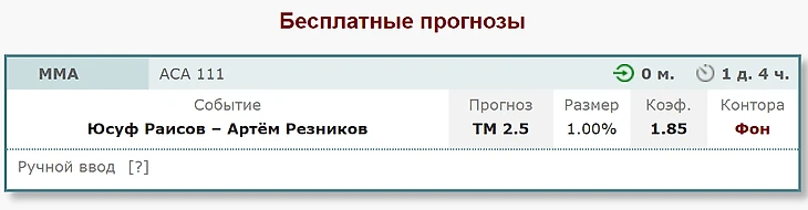 ACA 111 Юсуф Раисов, как очередное разочарование + прогноз