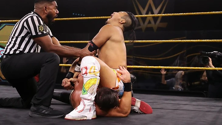 Победитель: Кушида — по болевому.