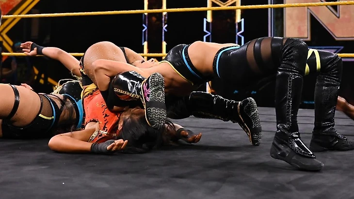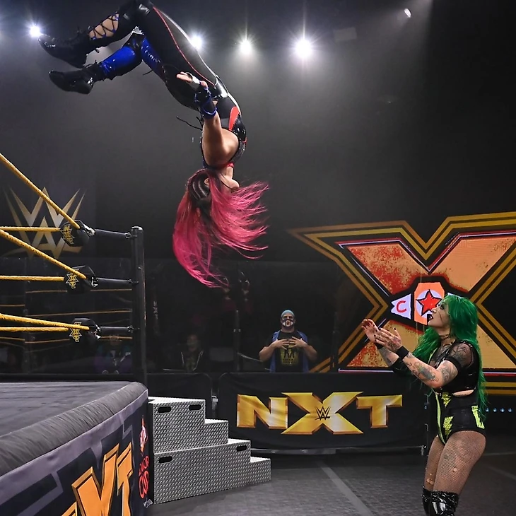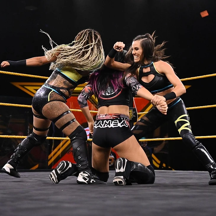 Кэйси и Кэйден смогли захватить инициативу благодаря своим хайфлай приёмам и командной работе. Но во время нахождения на ринге Катанзаро Ли и Камеа начали доминировать и избивать её. Всё закончилось на передаче тага Картер, которая провела по суперкику оппоненткам и вместе с Кэйси смогла удержать китаянку с помощью интересной комбинации сворачиваний.