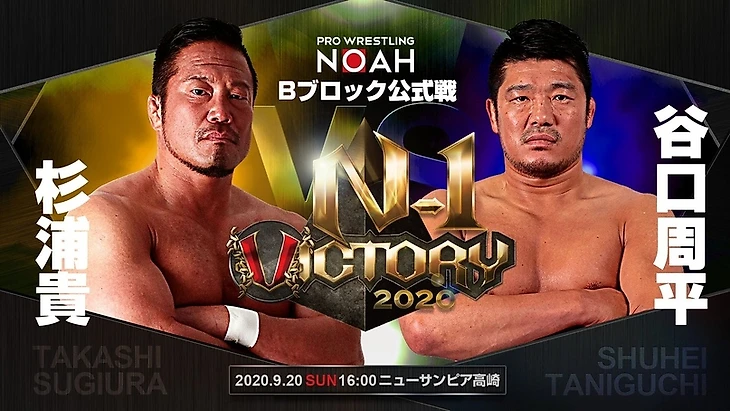 В начале может показаться, что в этом матче нет ничего особенного. Но это потому что из-за подачи и стиля самого матча от самих участников - это просто заруба двух массивных мужиков в возрасте, которым есть что доказывать. Танигучи нужно показать, что он хорош и в сольном плавании (вспоминая его путь как исключительно командного игрока в NOAH, хоть в качестве его партнёров по команде бывали не последние люди в лице КЕНТЫ, Наомичи Маруфуджи, Такеши Морешимы и Го Шиозаки) и он показывает это стремление через силу, а вот Сугиуре просто нужно доказать - что возраст для него не помеха и он по-прежнему хорош, и даже весьма опасен. В этом и есть особая изюминка данного мэйн-ивента.