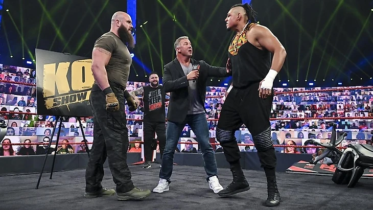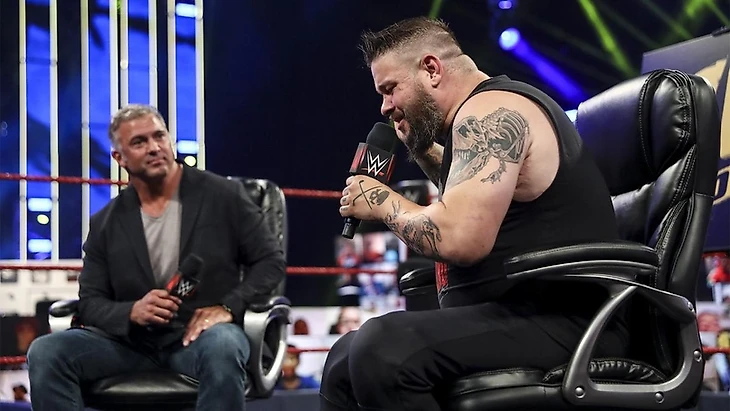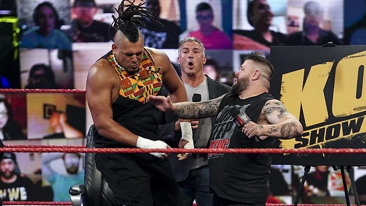 Шэйн отправился в гости к Оуэнсу прямо из «подземелья». Оуэнс поприветствовал нас на шоу, напомнил, как на последнем таком шоу его атаковал Алистер Блэк, с которым Кев разобрался на прошлой неделе. И сегодня его гостем стал человек, которого канадец вряд ли мог бы пригласить в здравом уме, но, камон, 2020 итак уже слишком странный год, так что Оуэнс следует тенденциям. О'Мэк появился, похвалил ведущего за комфортные кресла, на что Кевин ответил, что технически в каком-то смысле за них платит Шэйн, так что… Вспомнив немного о своем противостоянии, мужики перешли к обсуждению, вернее продвижению большого матче на RAW Underground, ради чего МакМэн, собственно, и пришел. Дабба-Кэто против Брона Строумэна. Похвалив каждого из здоровяков, Шэйн вспомнил, как Кев встречался с Даббой пару недель назад на RAW Underground. Канадец сказал, что прекрасно понимает, что это за парень, и МакМэн, чтобы «продвинуть этот бой получше», решил пригласить Кэто сюда, на ринг RAW. Гигант не заставил себя ждать, и во время его выхода нам напомнили, как он уничтожил Оуэнса 2 недели назад.