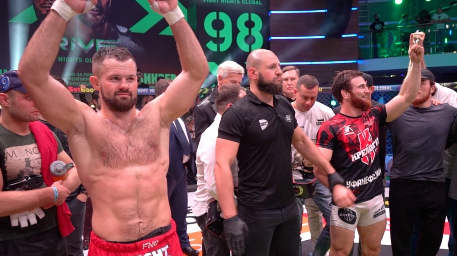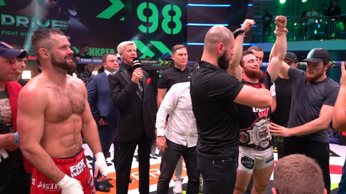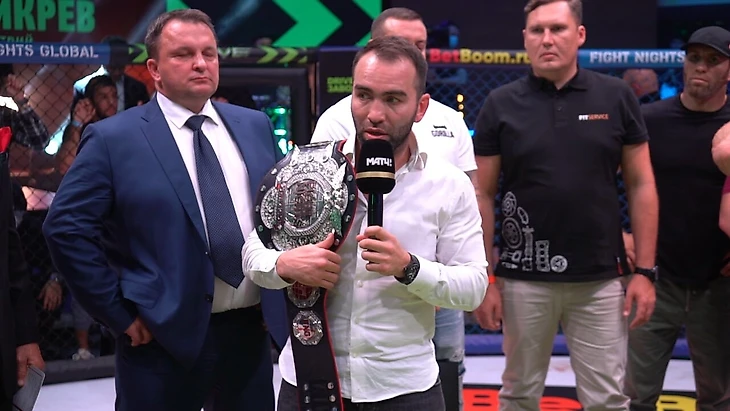 Гаджиев в микрофон объявил, что нужно зафиксировать победителя, чтобы кто-то один все-таки вышел с чемпионским поясом. И отдал слово судьям, которые все объяснили.