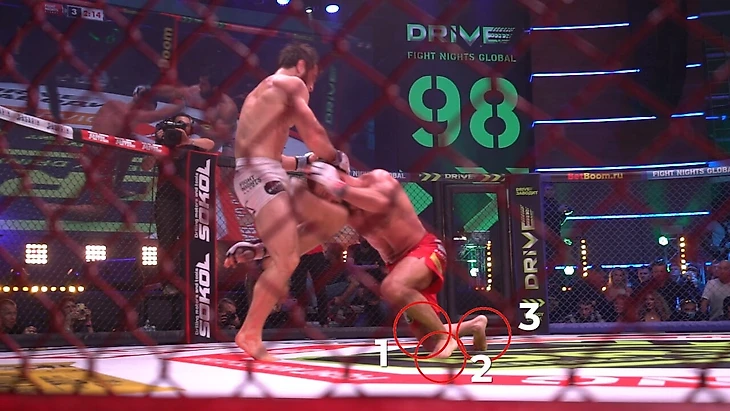 • Вторая ошибка: признание удара Амирова легальным. Возможно, у судей не было достаточного количества повторов с разных камер, но со съемки, которую вели мы, было четко видно, что у Бикрева – три точки опоры. Правая нога у него находилась на колене и стопе, левая – стояла.