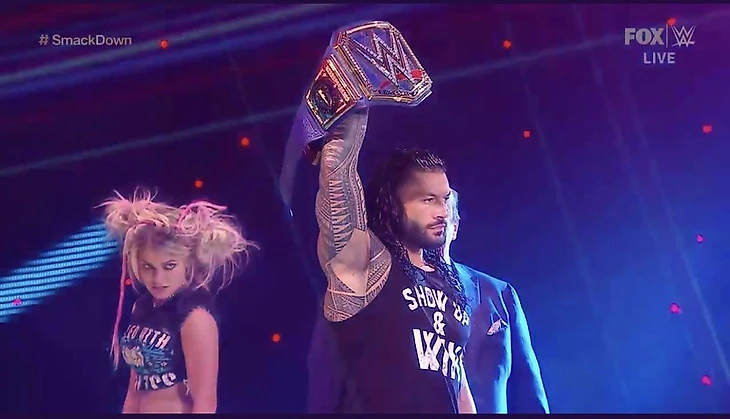 И вот после боя между Алексой Блисс и Лэйси Эванс Роман Рейнс и Пол Хейман всё-таки вышли на ринг для дачи тех самых ответов (во время выхода Алекса Блисс очень долго оглядывалась на Рейнса и его титул - ох уж эти намёки). Их прервал Джей Усо, Рейнса это смутило слегка, но он был готов к диалогу с кузеном. Рейнс в спокойной манере говорил о том, что Усо не особо понимает ту степень ответственности, которую сейчас несёт на себе Роман. И это не вина Джея, далеко не его вина, однако именно Роман стал тем самым носителем знамени их семьи. И именно Роман, именно он был избран быть тем самым главой их нынешнего поколения - и Рейнс в этом убеждён как никогда раньше.