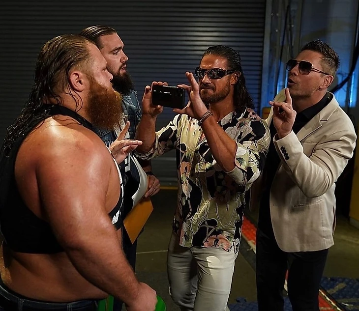 — Нам напомнили о том, как на прошлой неделе Миз и Джон Моррисон говорили об уходе Мэнди Роуз на красный бренд ради блага для Отиса. Крепыш был этим недоволен, а его выходка в сторону голливудских друзей привела к потенциальному судебному процессу. Его целью является прямой шантаж Отиса, чтобы заставить его отдать кейс мирно. Сейчас же за кулисами Кайла Брэкстон говорила с Отисом и Такером на эту тему - Отис говорил о том, как ему советовала когда-то мама, что в это мире нельзя доверять клоунам с карнавалов, 1%-ому молоку и адвокатам. В этот момент вмешались Миз и Джон, они дали понять что готовы лишить Отиса абсолютно всего в судебном процессе и без лишних церемоний. Миз подытожил, что он правильно сделал, отправив Мэнди Роуз на красный бренд - Отис был готов атаковать обоих. И тут Такер, изучив документацию друзей с Голливуда, обратил внимание на одну деталь: в самом судебном иске было отмечено только имя Миза как стороны обвинителя и того, кто должен быть защищён от рук Отиса. Моррисон тут уж своим видом показал недоумение, а Отис кинулся бить Джона. Драка не успела разыграться полностью из-за закулисных работников во главе с Адамом Пирсом (В принципе - почему бы не разыграть кейс на Clash Of Champions в одиночном матче между Отисом и Мизом? Хотя есть вариант с матчем в стальной клетке на Hell In a Cell);