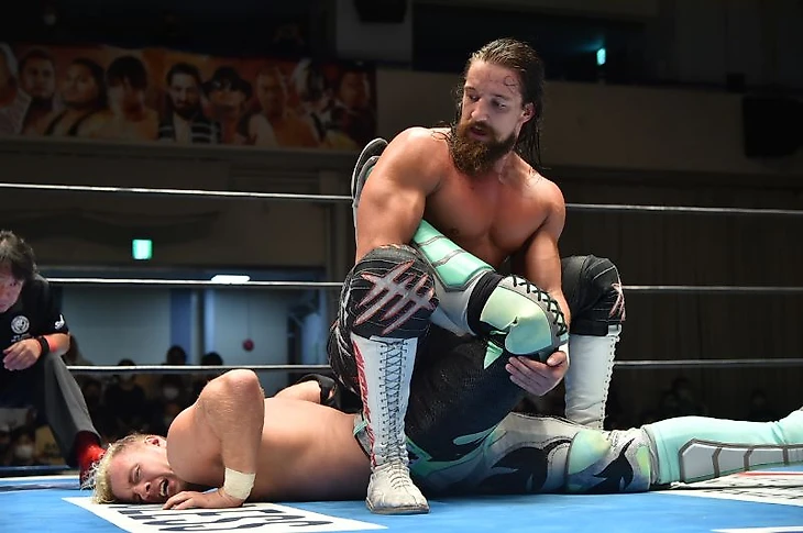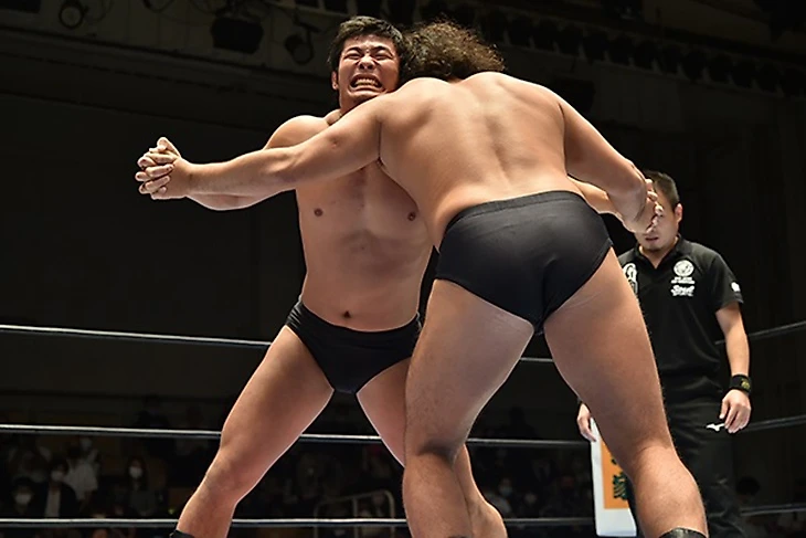 Я, возможно, уже сбился со счета, но вроде бы это третья встреча парней в рамках G1 Climax 30, и она, увы или к счастью, была похожа на 2 предыдущие, как и остальные 4 матча молодых львов на предыдущих днях турнира. Семь с половиной минут начались с чейн-рестлинга, и контроль захватил Тсуджи, начав мучить соперника в болевых. Попав в бостонский краб, Йуя дотянулся до канатов, а потом провел дропкик, проведя несколько ударов локтями, чопов и стомпов. Когда показалось, что Уемура уже полностью завладел инициативой, Йота шарахнул гарпун, а потом вышел на бостонский краб, перейдя в итоге на вариацию Liontamer, не пустив оппонента к канатам, и тому ничего не оставалось, как сдаться.
