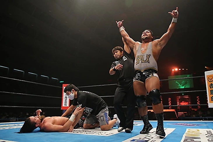 Это уже девятая встреча между ними, но из всех их Минору победил только в первом матче этого ставшего классикой противостояния в 2013. С тех пор мы увидели 5 побед «Рэйнмэйкера» и 2 ничьи, включая 2 победы Казучики и 1 ничью на турнирах G1. Начался бой с классического, но немного агрессивного чейн-рестлинга, а потом Казучика решил пообмениваться с Сузуки ударами предплечий, и, естественно, это было плохой идеей. В довесок, Окада еще и в Сузуки армбар попал, а потом действие переместилось за пределы ринга, где «Король» продолжил работу над правой рукой, даже очень неприятно атаковав ее с помощью ограждения. По возвращении в четырехугольник, Минору продолжил доминировать, прошел размен, в ходе которого он вновь атаковал поврежденную верхнюю конечность недруга, добавив РК и болевой, от которого «Рэйнмэйкеру» пришлось спасаться с помощью канатов. Затем он провел некбрейкер, и снова пошел обмен ударами локтями, и опять же (как неожиданно), Сузуки сотряс визави. Казучика ответил апперкотом, попав в Rear Naked Choke, и Окада перевел попытку Gotch-Style Piledriver в air raid neckbreaker. Придя в себя, борцы поднялись на ноги, и Минору предложил еще один обмен, даже убрав руки за спину. Удары бывшего чемпиона IWGP в тяжелом весе только рассмешили ветерана, пока апперкот наконец не сотряс его чуть-чуть, а дропкик и вовсе обрушил Минору на канвас. Томбстоун Сузуки заблокировал, проведя несколько хэдбаттов, однако Окада вернулся в матч Томбстоуном, тут же применив Кобра Клатч… который Минору перевел в армбар на руку, которую мучил весь матч. «Rainmaker» спасся в канатах, а потом поймал оппонента «коротким» лэриэтом. Попытка, видимо, Rainmaker была переведена в Rear Naked Choke, Казучика в ответ вышел на задолбавший уже всех удушающий, однако Сузуки снова перешел на свой Choke. Окада «поплыл», Минору решил, что вот и настало время для Gotch-Style Piledriver, но противник перебросил его через себя бэк бади дропом, завершив матч сворачиванием до 3.
