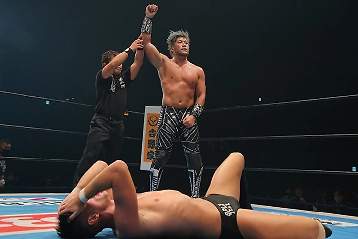 10 раз встречались эти рестлеры на ринге, каждый выиграл по 5 матчей, так что сегодня кто-то должен был выйти в лидеры. Правда, мы с вами даже не догадывались, что это произойдет именно таким образом. На старте Тору предложил Гото сначала рукопожатие, а потом и свою мерчевую майку в подарок, но Хирооки отбросил ее в сторону, Яно обернулся… и получил лэриэт в затылок. Сплетя ноги чемпиона KOPW2020 в узел, Гото свернул его до 3 через 18 секунд после гонга. Как Тору не спорил с судьей, решение изменить было уже нельзя. End Scene.