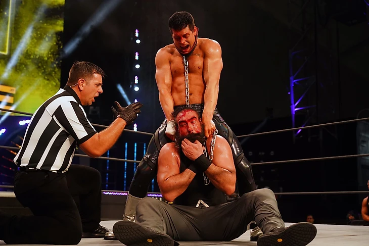 А вот в отношении самого факта победы Принца, прости, Господи, рестлинга я до сих пор не определился. С одной стороны, это было максимально очевидно. Я не знаю, кто в здравом уме мог всерьез рассчитывать на победу Ли. С другой стороны, подобные мысли возникали оттого, что Коди… заигрался, что ли. Он не то, что превозмогает – он вообще почти не проигрывает чисто. Например, я не понимаю, почему он не мог хоть раз чисто проиграть Дарби Аллину. И теперь я не понимаю, почему нельзя было потянуть данное противостояние, чтобы The Exalted One не выглядел полным лохом, который проигрывает на своих же условиях, а-ля Дольф Зигглер. А вот это вот «AND ONCE AGAIN, YOUR TNT CHAMPION…» от Джастина Робертса в конце меня прямо покоробило – как будто Коди подмигнул нам в духе «Ну, вы же понимаете». Это не букинг AEW – это букинг WWE, букинг Джона Сины. Кто теперь отнимет пояс у Американского Кошмара – большой вопрос, равно как и что ждет The Dark Order после уже второго сокрушительного поражения. За главным титулом, пока тем владеет Моксли, он явно не пойдет, командный дивизион уже насыщен его последователями… В общем, матч отличный, beautiful, glorious wrestling violence, как выразился бы Несанкционируемый, но весь персонаж Коди – это капиталы.