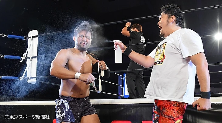 Эти двое уже дрались друг с другом… в 2013 Тору претендовал на титул чемпиона GHC, коим владел КЕНТА, и тогда нынешний член Bullet Club сумел защититься в довольно жестком матче, почти на 25 минут. В этот раз они выдали поединок на 9 минут. На старте КЕНТА потребовал у рефери, чтобы тот обыскал Яно на наличие пластыря, запрятанного гдето. И, конечно же, он у Тору был. Сам же КЕНТА имел при себе свой чемоданчик с контрактом, который не хотел убирать. И тогда Яно взял в руки стул, требуя у судьи, чтобы тот убедил и его оппонента выкинуть нелегальный предмет. Так они и стояли со стулом и чемоданчиком в руках, пока рефери не начал отсчет до 5. Тору свой стул выкинул, а вот КЕНТА так и остался с чемоданом… и тогда Тору снял защиту с одного из углов. Визави все еще держал свой чемоданчик. Тогда Яно взялся за другой тернбакл, и бывший полутяж WWE выбросил наконец кейс… и покинул ринг. Тору пригласил его обратно, но КЕНТА настаивал на продолжении боя за пределами ринга. Яно тоже четырехугольник покинул, так они и стояли по разные стороны ринга, пока судья не начал отсчет. И только на счет 19 они вернулись, но почти сразу опять покинули пределы четырехугольника. Здесь наконец Тору направил КЕНТУ в баррикаду, и это первое действие одного рестлера по отношению к другому за 4 минуты, потом взял пластырь, чтобы примотать визави к этой самой баррикаде, но КЕНТА отбился и брызнул «королю про-рестлинга» в лицо антисептиком. Яно вернулся в ринг, КЕНТА поспешил за ним, Тору кинул в него подушечкой от угла ринга, но представитель BC успел до завершения отсчета, где провел (заботченный) DDT. Затем КЕНТА нашел еще одну бутылку с антисептиком, открыл крышку и попытался полить обеззараживающим средством, но Тору защитился, проведя сворачивание до 2, после чего в итоге был облит санитайзером и свернут, однако только до 2. Еще раз быть облитым антисептиком Яно не захотел, и они с противником устроили борьбу за бутылочку… Облив в конечном счете рефери. Естественно, тот отключился, а КЕНТА схватился за чемоданчик, но промазал по голове Яно, и вместе они ушли на стэйдж, где Тору вновь уклонился от удара, КЕНТА зарядил в «косяк» рядом с занавесом на стэйдже. Кейс раскрылся, и из него высыпалась куча мотков пластыря. Уже через пару мгновений КЕНТА плотно привязал Яно к тому самому косяку недруга под отсчет рефери и вернулся в четырехугольник, ну а Тору проиграл по отсчету. Естественно, он очень расстроился.