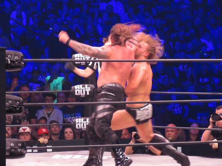 Перейдем к одному из самых нашумевших в последнее время приемов: Judas Effect Криса Джерико. При переходе в AEW у Криса была цель создать нечто новое. Это касалось не только образа, но и финишера. В процессе поиска он отправился в тренировочный зал к Дейву Батисте, где отрабатывал удары из смешанных единоборств. По ходу тренировки он отрабатывал крученый удар локтем, и ему понравилось. От начал повторять этот элемент и, в итоге, отточил мастерство до предела. Помните, я говорил, что в UFC удары локтями-это такая же обычная вещь, как и в реслинге? Так вот, «Эффект Иуды» - реально опасный прием. Именно на этой реальной опасности Джерико и основывался, когда презентовал свой новый финишер. К тому же, как и Codebreaker, крутящийся локоть можно использовать в любой, самый неожиданный для соперника момент.