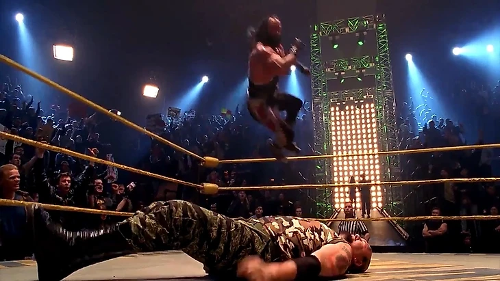 Шейн МакМэн и его многочисленные Diving Elbows за пределы ринга, с верхушки клеток и так далее.