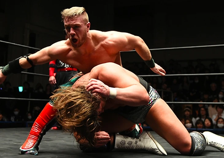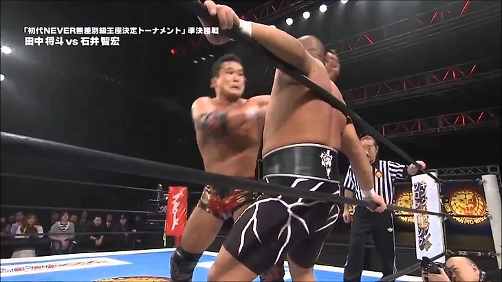 Начнем с самого-самого простого. Масато Танака-настоящий ветеран, который выступал практически во всех топовых японских промоушенах. С 1993 года он успел побывать в NJPW, MJW, NOAH, DDT и так далее. В разное время у него были разные финишеры, например, фрог сплеш. Но сейчас, на закате карьеры, он избрал себе более безопасный и простой финишер: когда соперник сидит на ринге, Масато берет разбег от канатов и врезается в оппонента локтем. В принципе, Rolling Elbow — это достаточно простой вариант исполнения, к тому же, не самый красочный с точки зрения эмоций.