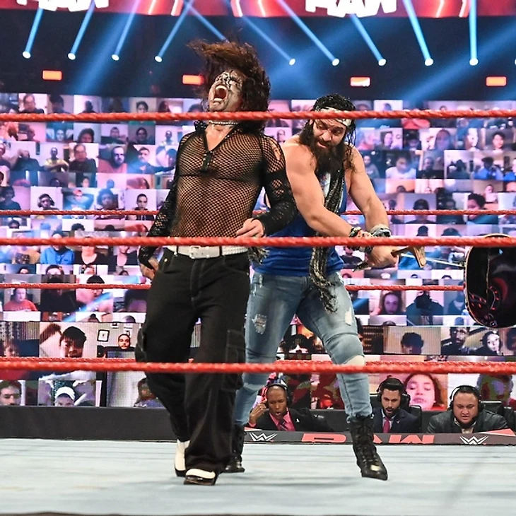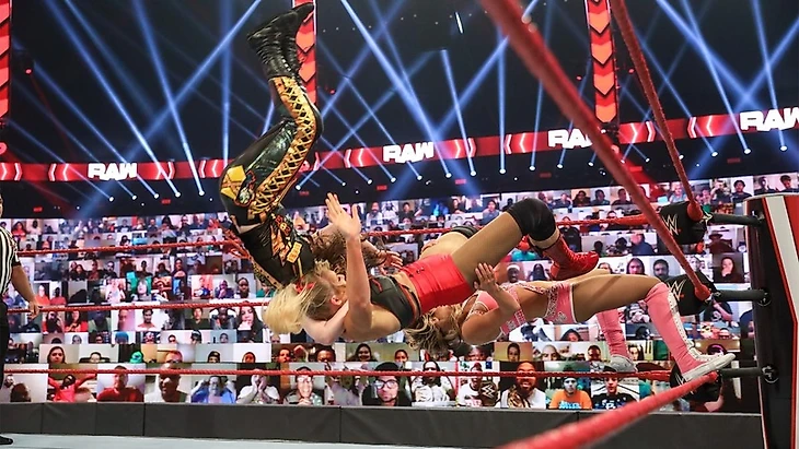 А мне понравился этот сегмент. Во-первых, да, я уже прочитал у Тони Эсеро, что Алекса «пересмотрела мультик про Харли Квинн», но я то этот мульт не видел, да и вообще довольно далек от этой темы, поэтому мне сложно проводить параллели. Тем не менее, не так уж и важно, кем Лекси вдохновлялась, ибо она молодец. Она максимально здорово играет «горячую чокнутую девушку» для такого рода шоу. Потому что в ее поведении есть и какая-то условно говоря Джокеровская театральная наигранность, но при этом хочется верить, что эту наигранность демонстрирует человек, у которого действительно крыша поехала. Алекса, как и Шеймус с Риддлом по праву отправляются в редкие светлые пятна на этом еженедельнике. Конфронтация МакИнтайра и Ортона, которая не заканчивается но закрывает шоу — это уже становится традицией (аж вторую неделю подряд так RAW заканчивается), и здорово, что этим двоим наплевать на «Изверга». Нет, я понимаю, что к концу 2020 года почти всем наплевать на изверга, но они хотя бы не «ходят под себя» при виде этого альтер-эго Уайатта, как когда-то Роллинс. И из этого потенциально может выйти что-то путное. Я имею ввиду из треугольника МакИнтайр — Ортон — «Изверг». Тут и игры разума могут быть, и жесткая борьба в матчах, и все, что мы любим. Но это WWE, поэтому я бы не рассчитывал особо.