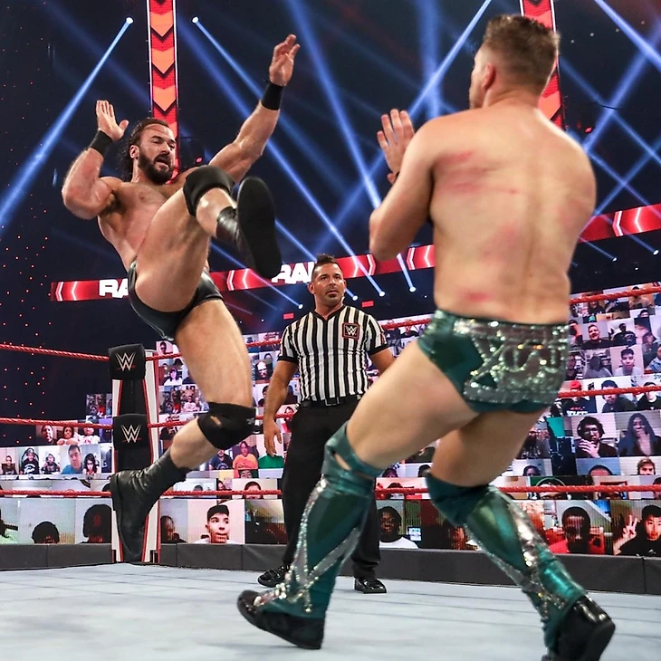 Довольно базовый сегмент. Да, и тут можно попытаться докопаться до WWE, до того, что они опять выставляют Миза и Моррисона идиотами, которые, видимо, вообще понятия не имеют, кто такой МакИнтайр, раз, не имея толком мотивации прерывать именно его сегмент, лезут к нему на ринг, заигрывают с ним, за что в результате и огребают. Ладно, сделаем вид, что мы верим в то, что Мизу настолько успех воскресный вскружил голову, что он уже не соображает адекватно. В остальном типичный такой сегмент. Ну и Миз типично для себя прекрасен на микрофоне, Моррисон отлично отработал «вторую скрипку», ну и Дрю сделал то, что делает лучше всего.