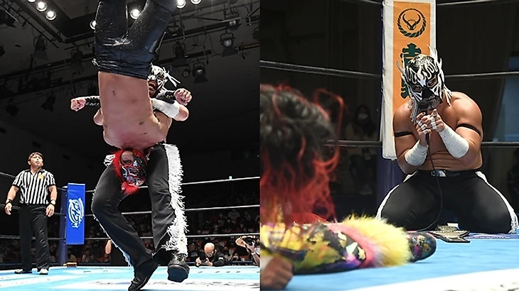 Причём единственным MVP матча стал Хирому Такахаши, так как на нём Деспи и Нобу прям уверенно отрывались и старались сделать из него самое слабое звено, не обращая внимания на Буши. Причём именно масочник из LIdJ, как правило, служит тем кого нужно удерживать без особых проблем. Правда на этот раз - это не сработало так хорошо, как могло бы, потому что Буши и сам в очередной раз доказал: он такой же крепкий орешек и может нанести немало урона своим оппонентам, а уж совместно в команде с одним из сильнейших полутяжей и рестлеров... ну Вы поняли к чему я. Так что Деспи и Нобу успели потратить все свои сильные ударные комбинации и в самом конце прибегли к главным грязным трюкам - причём и это сработало не сразу (тем более с бампом рефери и попыткой применить свои титулы как оружие, пока это было возможно), но всё-таки это принесло самый главный результат.