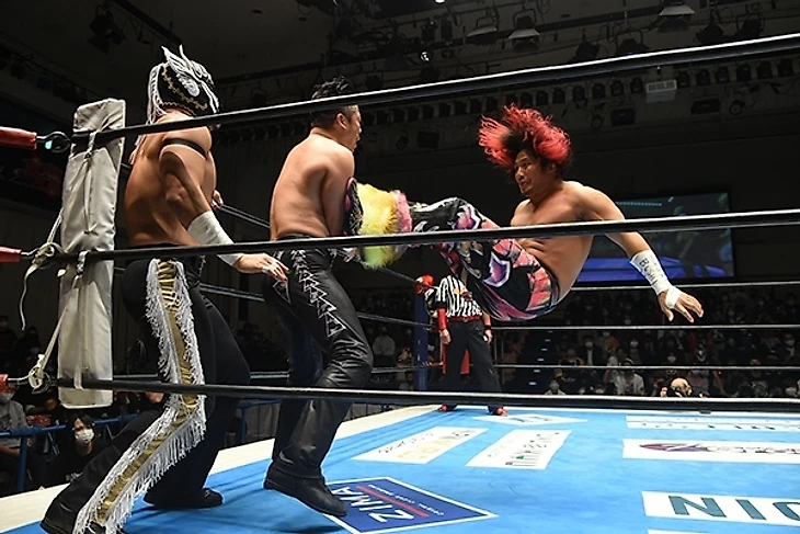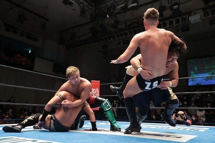 Причём создавалось ощущение, что именно упорство Хаши и Гото чуть было не вышло боком Таичи и Заку в плане придумывания новых способов их унижения на глазах у зрителей - не сказать что у последних прям весь креатив в области грязных трюков уже исчерпался, но было заметно что им становиться тяжеловато что-то ещё придумывать. И тут разумеется хилам приходилось пускать в ход ударную силу своих скиллов, чтобы хоть как-то затормаживать неостановимых андердогов. Да и сам матч с вывеской "чемпионы против чемпионов" за одни из старейших титулов NJPW - уж такое достойно самых высоких оценок.