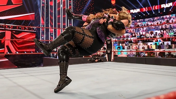 Также перед самим матчем нам показали Лэйси Эванс с Пейтон Ройс, которые давали прогнозы касательно рейна Джэкс и Бэйзлер (Любопытно, что недавно Ройс с Эванс бились за место в женском команде и были готовы рвать друг друга).