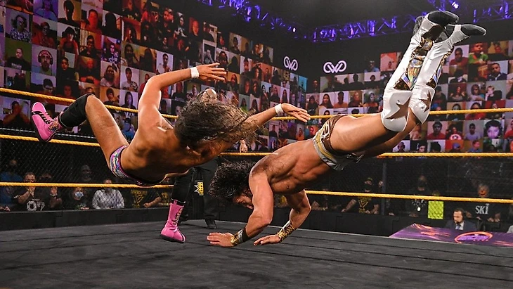 Личное мнение автора обзора: данным исполнителям уже приходилось встречаться между собой в рамках 205 Live, когда бренд обитал на ThunderDome. Тогда их встреча вышла не самой примечательной, впрочем и сейчас так вышло. Хотя тут уже была некая связь между ними - в сюжетном отношении и вокруг Брайана Кендрика: мол Адонис не усвоил уроков, советов и простой мудрости от ветерана, а вот Мансуру захотелось поучиться у бывшего и 2-го в истории бренда чемпиона среди полутяжей. И судя по всему - Мансур закрепиться в роли ученика Кендрика (что в будущем сулит немало интересно, так как Брайан сейчас может и не очень привязан к хильской стороне оригиналов, но надолго это продлиться?), так что тут много чего любопытного будет. Данный матч вышел чуток лучше первой встречи между Адонисом и Мансуром, но пока что первому не хватает больше практики, отчего он выглядит серовато и сыровато на ринге.
