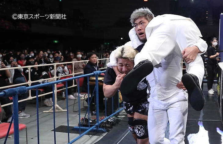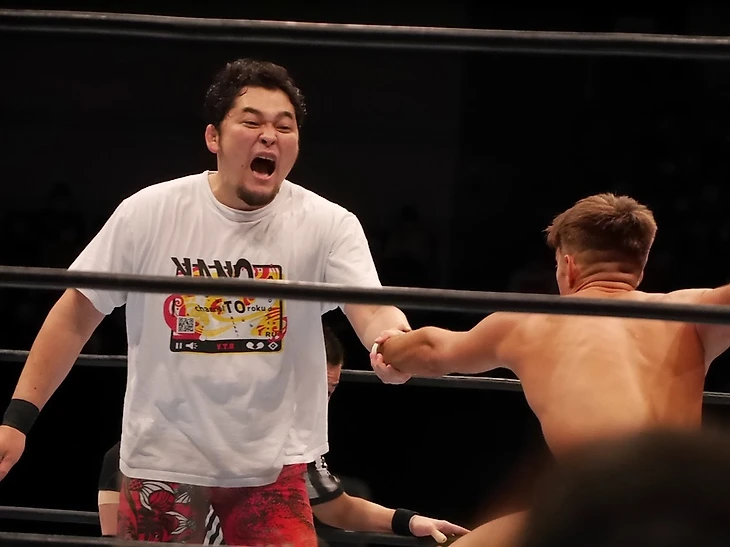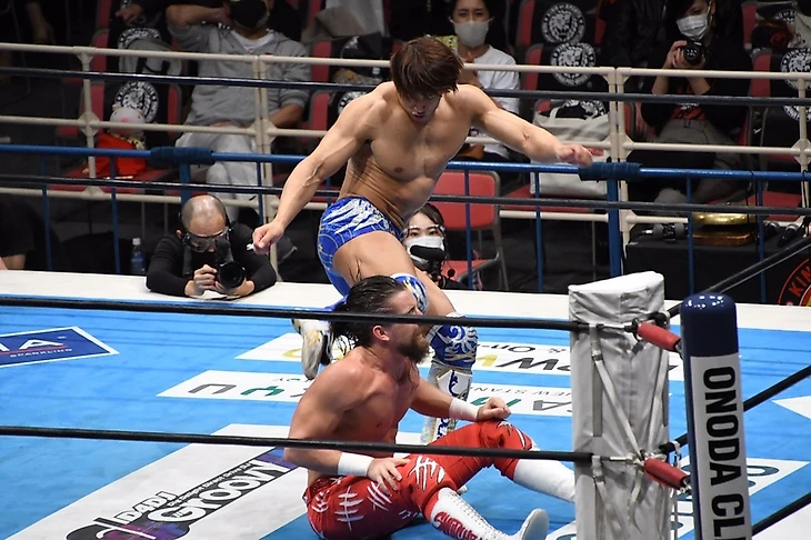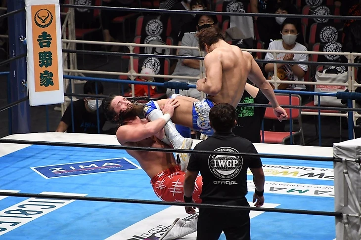 Забавно, что этот матч открывал матч, но защита на углах ринга присутствовала, так что перед поединком молодые львы должны были ее снять. На старте Тору предложил драться не используя «оголенные» углы, пообещав, что он сам не будет прибегать к их использованию… но после стартовой борьбы за инициативу на настиле именно он попытался запустить соперника в угол первым. Естественно, Зак это не оценил, заблокировал пару запусков и сам начал знакомить чемпиона с креплением канатов. По итогу Яно укатился за пределы четырехугольника, вытащив из под ринга тернбакл, использование которых в этом бою, как бы, под запретом. Сэйбр присоединился к визави на рингсайде, где был направлен в ограждение, и «король про-рестлинга» вернулся в ринг, попытавшись пределать подушечку к углу, но британец атаковал его, не позволив закончить начатое. Пара коронных атак, и командный чемпион затянул Тору в болевые на ноги. Яно до канатов дотянулся, вновь очутился за пределами ринга, где нашел еще один тернбакл. ZSJ попытался убедить его убрать «оружие», естественно, японец не послушал, что в конечном счете вылилось в обмен ударами на рингсайде, в ходе которого чемпион KOPW2020 брызнул Сэйбру в лицо антисептиком, но тот умудрился вернуться в четырехугольник на счете 19. Пока Зак приводил глаза в порядок, Тору примотал подушечку к углу пластырем, и британец попробовал атаковать — Яно направил его в этот самый угол… однако, на нем же был тернбакл, а значит урона Сэйбр не получил, отправив потом Тору на свидание с незащищенным углом. Еще немного доминирования с болевыми от представителя Suzuki-Gun, который все больше наносил урона ногам противника, и Яно внезапно вернулся в матч с помощью белли-ту-белли. Пара сворачиваний, и британец провел коронный European Clutch, но тоже до 2. Снова болевой на ногу прошел, член CHAOS пытался как-то ответить собственным болевым, но в итоге ему ничего не оставалось, как дотянуться до канатов и «вывалиться» на рингсайд, чтобы немного прийти в себя. Однако не тут-то было — Зак заключил его в болевой на ногу с помощью баррикады. Довольно долго Тору мучился, рефери пытался как-то это безобразие прекратить, и чемпион наконец смог отбиться и вернуться в ринг. Выяснилось, что мучаясь в болевом, японец завязал шнурки недруга, и Сэйбр оказался привязанным к ограждению. Естественно, «отвязаться» у него не получилось, и Яно защитился по отсчету. Тору торжествует, а Зака еще долго не могли освободить. Гэбриел Кидд с этим не справился, за что попал в болевой, и в конце концов Йуя Уемура просто разрезал ножницами шнурки Зака Сэйбра-младшего… и британец отобрал у него эти самые ножницы, побежав за бедным молодым львом, угрожая ему холодным оружием.
