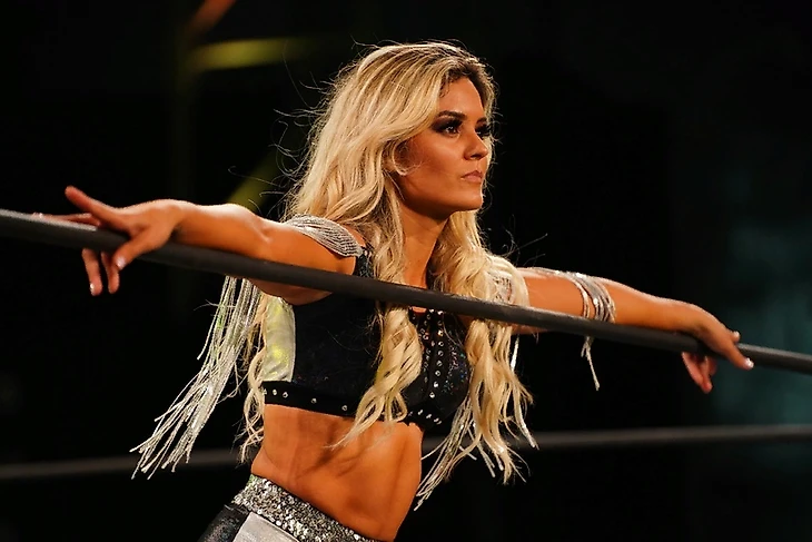 Куча анонсов, рекламная пауза – и мы возвращаемся на арену. Несмотря на свое поражение в титульном матче на Full Gear, выход Коди так же пафосен, как и всегда. Сегодня он вышел один, в своем обличье вице-президента, и попросил микрофон. Немного позаигрывав с толпой, он поздравил Дарби Аллина с его первым в компании Чемпионством TNT. На этот раз Коди не ищет реванша, поскольку в его статистике есть еще одно поражение – он хочет еще один матч с ЭмДжейЭфом. Пока он говорил, на ринг прокралась смуглая мускулистая женщина с блондинистыми волосами.