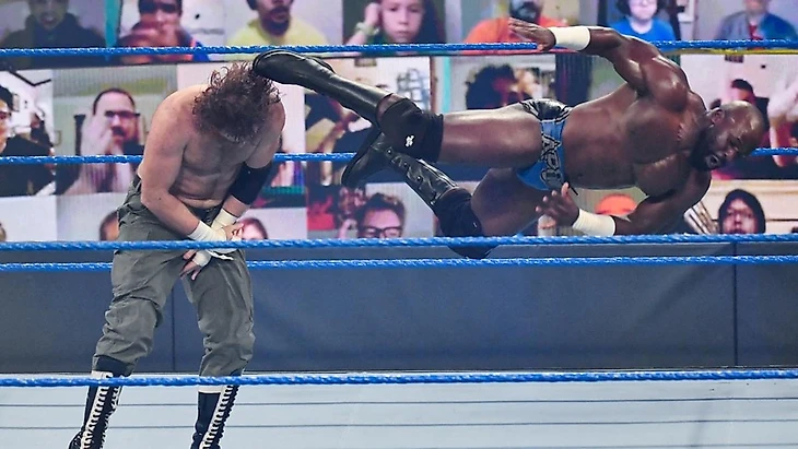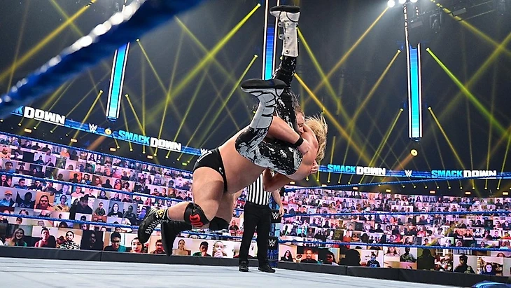 Тут уже матч несколько лушче тех двух, что проходили две недели подряд до сегодняшнего дня. Правда это дело было омрачено срывом дебюта Грин на синем бренде: судя по всему это случилось во время стычки на апроне, когда Челси приняла дропкик от Морган и очень жёстко упала с апрона прямо на левую руку. Также были подозрения и насчёт Тамины, ибо после исчезновения Грин с поля зрения, самоанка также долго не появлялась на ринге. В итоге Лив и Наталья вспомнили времена своего поединка на 2-ом дне WrestleMania 36 и уверенно поборолись между собой.