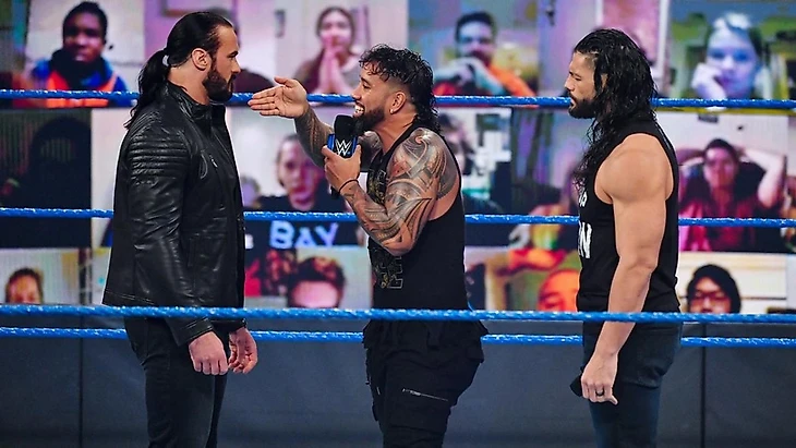 Рейнс же сказал, что он любит Дрю, уважает его и не отрицает правдивость всех его слов. Но Роман всё-таки вернулся в строй и сделал невозможное даже для самого себя. Рейнс сделал так, что по сути никто (по мнению самого Романа разумеется) и не интересуется судьбой Дрю МакИнтайра или кого-либо ещё с RAW - потому что все переключили своё основное внимание на события синего бренда и в частности - на то, что происходит вокруг Романа Рейнса и всего что с ним связано. Дрю ещё раз повторят свою нынешнюю цель: победить Рэнди Ортона, стать снова чемпионом WWE и уже на Survivor Series на самом Рейнсе показать кем он стал. Ситуация накалилась и Джей Усо вмешался, чтобы не допустить драки - и в порыве эмоций касательно того, что Джей уже сотворил с Кевином Оуэнсом и Дэниелом Брайаном, Усо вызвал МакИнтайра на матч сегодня. Дрю толкнул от себя Джея, а Рейнс удержал брата от драки. В итоге самоанцы с Хейманом покинули ринг, на чём сегмент завершился.