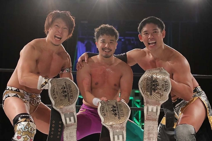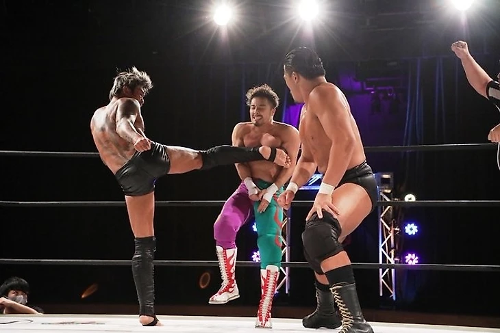 5) Eruption (Казусада Хигучи, Юкио Сакагучи и Саки Акаи) против Wakate Tsushin (Акито, Казуки Хирата и Шота) - титульный поединок за командные трио-чемпионства KO-D.