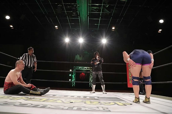 Довольно напряжённый поединок, который мог иметь серьёзные последствия в будущем для обеих сторон. Но в целом тут матч имел особенность - это сходство тактической борьбы обеих команд: сначала была общая разгонка и акцент на Шоте, который был тем кто в принципе организовал этот матч. Чемпионы старались отрываться именно на нём, чтобы сделать его максимально слабым звеном, понимая что такой трюк не сработает на остальных оппонентов. И в целом это работало, но периодически из-за того, что претенденты сделали ответный ход с Саки Акаи - они сделали чемпионку таким же слабым звеном. Поэтому ситуация стала непредсказуемой, ибо Шота решил сыграть на Саки, показав себя максимально агрессивным - Акаи не отставала от него и держалась из последних сил, пока остальные пытались остановить друг друга или прорваться на помощь остальным. Это обеспечило общую интригу как таковыю, ну и рестлинг был весьма хорош, тем более в командных взаимодействиях.