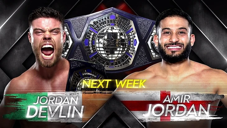 — Тем временем, Сид Скала объявил, что они с Джорданом Девлином согласовали защиты «настоящего» Чемпионства Полутяжеловесов. Чемпион с порога дал знать, что никого благодарить за это он не собирается, наоборот – это Скала должен благодарить его за то, что он подарил этот титул бренду NXT UK. Все, что нужно Джордану от Сида – это достойный претендент. По счастливому совпадению, мимо проходили Кенни Уильямс и Амир Джордан. Счастливчик заявил, что хоть он и немножечко травмирован, но в будущем он был бы рад подраться за пояс. Тут его прервал его нетравмированный напарник, который тоже был бы не прочь потягаться с Ирландским Тузом. Уильямс был, очевидно, уязвлен слишком явной прытью Амира, но смирился с его желанием и открыл ему дорогу к титулу. Девлин не упустил случая постебать шаткость положения команды полутяжей, однако ему было, по сути, наплевать, с кем состязаться, и он оставил за парочкой выбор – кто из них решиться поставить против Туза?