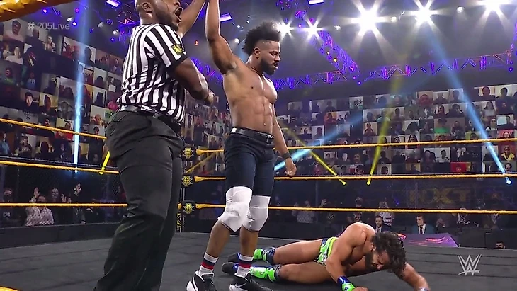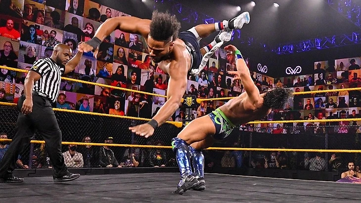 Здесь уже поединок был несколько поинтереснее, плюс с позиции разборок между потенциальными и уже бывшими претендентами на чемпионство среди полутяжей NXT. Плюс между относительно перспективным новичком и матёрым ветераном бренда - любопытное в целом зрелище, в теории. На практике вышло всё иначе - не сказать что плохо, местами даже очень хорошо, но всё же не фонтан. И всё из-за старого-жуткого отсутствия внятного хронометража выпусков для нормальных матчей старых времён 205 Live до пандемии. И куда уж без овербукинга.