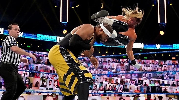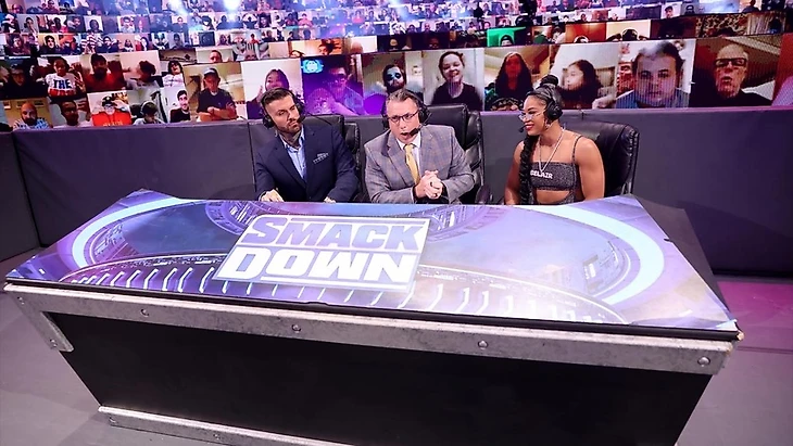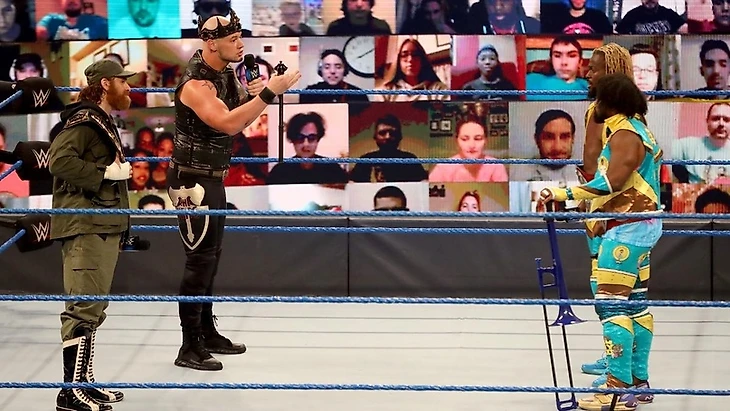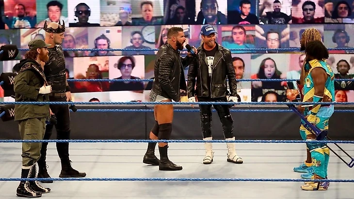 И после приветствия от Майкла Коула - Кофи Кингстон и Ксавье Вудс, командные чемпионы RAW, прибыли на Friday Night Smackdown в качестве гостей. Чемпы красного бренда начали свою речь о том, найдутся ли места в "отеле имени Smackdown" и сразу перешли к обсуждению личности Гробовщика, которому будет посвящена Серия Выживания 2020. Не обошлось без ещё одних коронных жестов от Нового Дня - они почти показали всё, что желали... пока не объявился Сэми Зейн со своими извечными требованиями аля Примадонна. Мол всё говорят о Тейкере, но никто не подумал о Зейне, о статусе ИК-чемпионства и о том, что попытаться защитить честь Сэми перед агрессивным Бобби Лэшли. Гости с RAW были в полном недоумении от всей речи, намекая Новому Дню о том, о ком им стоит много говорить. Кофи разумеется понял суть мысли Зейна и с Вудсом начали говорить о внешнем виде Сэми - мол выглядит Зейн здорово, но и напоминает какого-то разведённого папочку, который внёс плату за 1-комнатную квартиру.