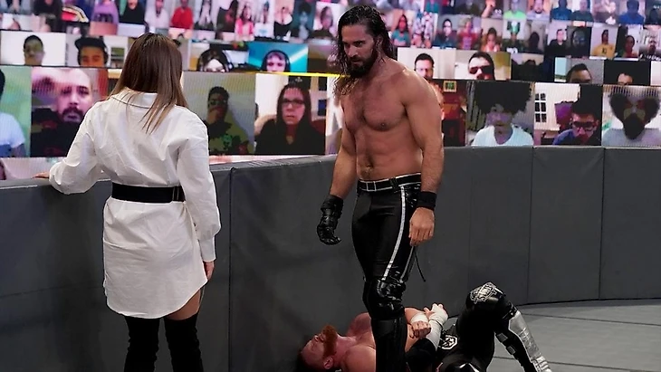 Оба атаковали друг друга до матча. А после гонга - те не стеснялись и люто уничтожали друг друга за всё хорошее в прошлом. Роллинс так и вовсе проявлял изощрённую изобретательность, чтобы унижать Мёрфи всё сильнее и сильнее - особенно на глазах мужской части семьи Мистерио и в частности перед Алией. несмотря на лёгкую беспомощность, Мёрфи удалось собраться и постепенно давать не менее жёсткий отпор своему бывшему наставнику. И Сет был даже близок к тому, чтобы победить своего нерадивого бывшего ученика. Был близок...
