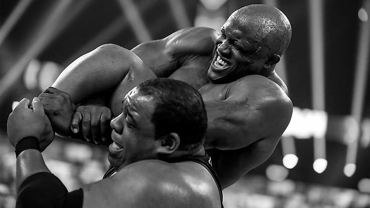 Весьма и весьма симпатичный оупенер, но далёкий от того шедевра, который эти команды выдали неделей ранее (а тогда мой старший коллега не поскупился выдать их тогдашнему матчу аж 4 звезды). Но в данном случае тут всё связанно с сюжетной составляющей данного поединка - ибо его разделили на две части и по факту это было два матча, однако это не стоит буквально так трактовать из-за рестарта поединка через минуту после двойной ДК по отсчёту. Причём такое завершение "первого матча" могло бы привести к назначению боя без ДК, но этого не случилось из-за уверенности MVP в силах своих парней победить чемпионов чисто и без специальных условий. И несмотря на более медленный темп поединка, с позиции сторителлинга - это было более чем уместно: потому что MVP через Шелтона и Седрика хотел унизить Новый День по-максимуму. Ведь Кингстон с Вудсом своим проигрышем унизил честь красного бренда и такие чемпионы мол на RAW не нужны. Так что это был плавный, но оттого и симпатичный поединок, который ну никак не заставлял скучать.