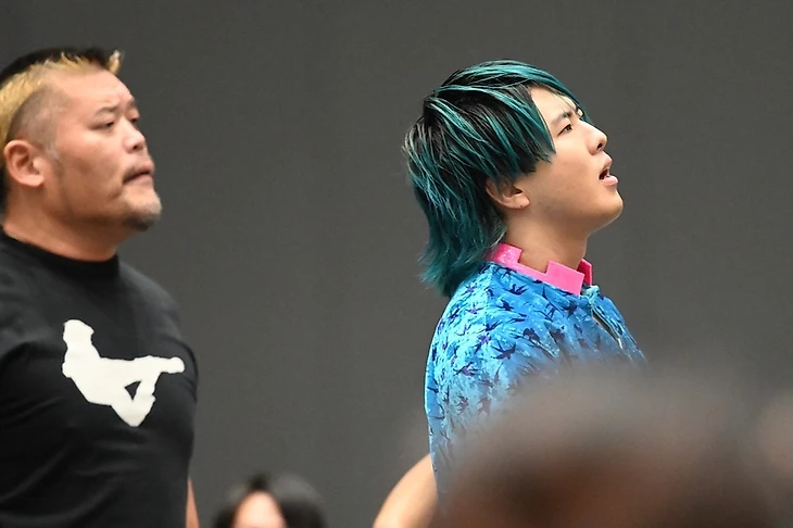 Ah shit, here we go again. Начали бой Коджима и Кидд, после стартового лок-апа пошел обмен ударами локтя, и британец умудрился провести шоулдер тэкл, но его оппонент заблокировал попытку суплекса, перехватив инициативу. Тэкл от Сатоши, и в поединок отправился Хонма, который принялся обрабатывать молодого льва бутами и захватами. Достаточно быстро тэг вернулся Коджиме, который почти сразу получил дропкик, и Гейб передал право ведения боя Нагате. Юджи, по классике, стал рвать и метать, провел эксплоудер до 2, а от Nagata Lock Томоаки спасся у канатов. Когда «легальным» стал вновь Коджима, конечно же, он провел серию коронных чопов в углу, удар предплечьем в другом углу, но когда Сатоши забрался на третий канат, Нагата сбросил его пресс слэмом. Гэбриел залетел в поединок сентоном до 2, после чего вырубил Зонму попытавшимся изменить ход матча, а на серию лэриэтов Коджима ответил DDTшкой до 2. Нагата и Хонма снова решили влезть в бой, но в итоге стали разбираться друг с другом, и эта разборка закончилась коронным Kokeshi в полете от Томоаки, и вместе Хонма и Нагата решили уничтожить британца, получив, прямо как на предыдущим шоу, двойной дропкик. Butterfly Suplex, же, конечно же, был заблокирован, и Сатоши шарахнул Koji Cutter до 2. Попытку Cozy Lariat Кидд перевел в сворачивание до 2, после чего он провел несколько чопов, разогнался… и попал под победный Cozy Lariat от Коджимы.
