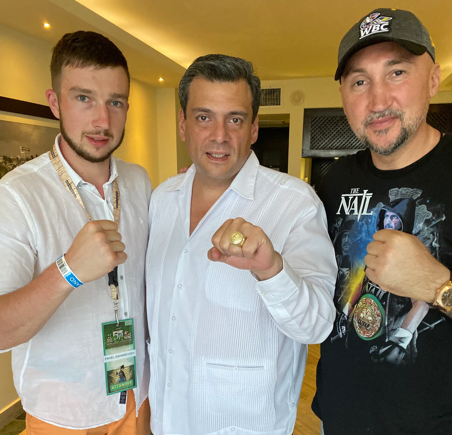 Вообще это долгая история. Но если вкратце, нас познакомили с Маурисио (*Маурисио Сулейман - президент World Boxing Council - прим. редактора), мы хорошо себя показали в делах и начали сотрудничать. Практически не один громкий вечер в мире бокса не обходится без зеленого пояса WBC, соответсвенно для нас это также зеленый свет на посещение мероприятий и знакомство с актуальными чемпионами и легендами бокса. Этому сотрудничеству очень поспособствовало наше знание испанского языка, отсюда совет молодежи - в независимости от выбора ремесла, учите языки это вам очень поможет.