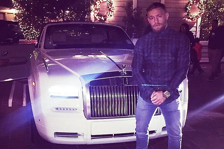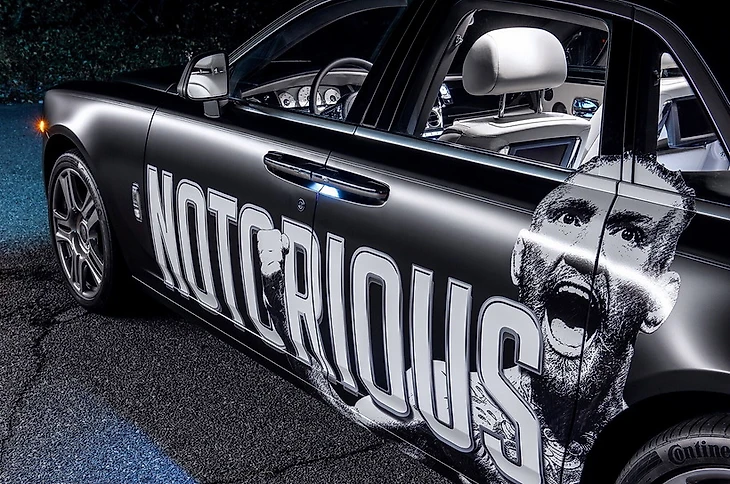 Начнем с Rolls-Royce Ghost. В 2016-м Rolls-Royce вышла на Конора перед чемпионским боем с Эдди Альваресом на UFC 205. Компания сама предложила Макгрегору модель Rolls-Royce Ghost, стоимостью 277 тысяч евро (здесь и дальше – стоимости по Верси The Sun). Для Конора разработали специальный дизайн – на матовом корпусе машины красовалась белая надпись Notorious и портрет бойца.