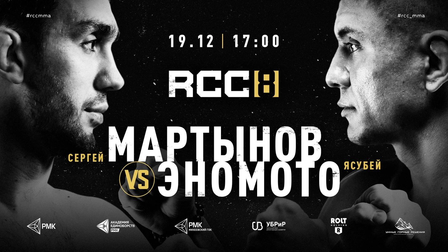 19 декабря в Екатеринбурге состоится заключительный в этом году турнир по смешанным единоборствам RCC8. Шоу возглавит трехраундовый бой в среднем весе между Ясубеем Эномото (20-12) и Сергеем Мартыновым (13-3).