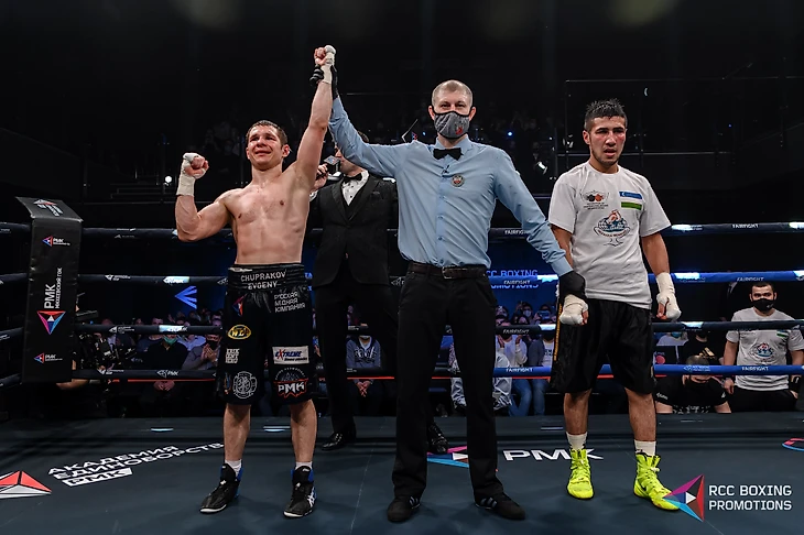 Российский боксер и экс-претендент на титул чемпиона мира WBO Евгений Чупраков и первый номер Узбекистана в полулегком весе Сардор Музаффаров закатили невероятную рубку на турнире RCC Boxing Promotions.