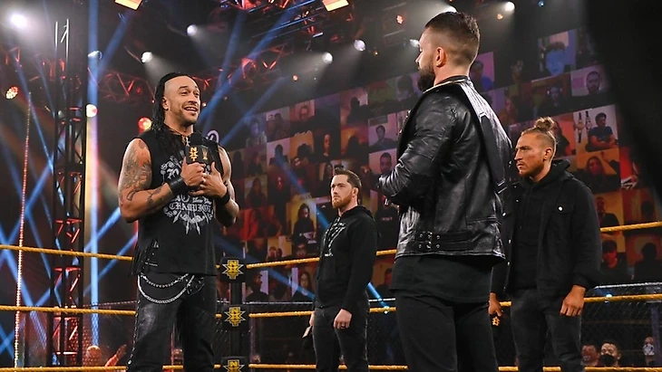 Финн начал свою речь с утверждения, что командный спорт закончился, так как вернулся чемпион NXT. Кто-то его любит, а кто-то ненавидит, но если кто-то хочет встретиться с Балором на ринге, ему лучше сразу выйти. И на этих словах появляется Пит Данн. Тот видит что-то общее в них двоих, но при этом обещает отобрать титул у ирландца. За ним выходит Кайл О'Райли, который заявил, что в воскресенье его группировка подтвердила, что все тут живут в Неоспоримой Эре. Да и между ним и Финном есть ещё кое-какие счёты. За Кайлом к рингу проследовал Дэмиан Прист, который заявил, что вывеску "Финн Балор против Дэмиана Приста за чемпионство NXT" хочет не сколько сам Лучник Бесчестья, сколько сам Балор. Тут ему ответил Данн, заявивший, что Прист даже Леона Раффа победить не смог. На это Дэмиан ответил, что он хотя бы не бегает молчаливой собачкой за МакАфи, который платит деньги. Между парнями и далее продолжилась бы словесная перебранка, если бы бывший Североамериканский чемпион не обратил внимание, что чемпион по тихому покинул ринг. Тот, будучи уже у рампы, ответил, что он действительно будет защищать свой титул в январе. Но против кого - решит Ригал, ведь это его работа. В этот момент к нему вышла Скарлетт, обозначив претензии последнего претендента на титул. Балор же ответил ей, что если её клиент готов, то чемпион тоже готов. Напоследок Прист обратился к Скарлетт, сказав, что в следующий раз её парню стоит выйти самому, чтобы они с Дэмианом могли пообщаться как мужики.