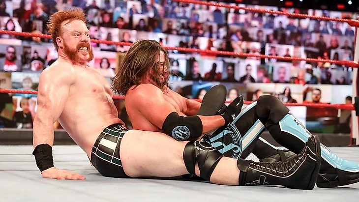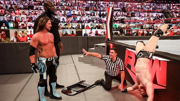 Естественно, секьюрити присутствовал на рингсайде. Шеймус сразу завладел контролем, провел пару-тройку атак, придушил соперника чуть-чуть, и снова стал отвешивать удары перед тем, как затоптать «Феноменального» в углу. Стайлз прогулялся чуть-чуть по рингсайду, и поймал оппонента бутом во время возвращения в ринг, перехватив инициативу. Запуск в угол Шеймус, правда, реверсировал в собственный жесткий irish whip, и вернулся к избиению претендента на чемпионство WWE. ЭйДжей не бросал попыток отбиться, и в итоге он смог выбросить недруга за пределы четырхугольника, а потом поймать по пути обратно парой страйков, добавив брутальнейшее колено. До завершения отсчета ирландец успел вернуться в четырехугольник, провел пару неприятных суплексов, а от третьего Стайлз отбился, проведя дропкик. Шеймус снова оказался на рингсайде, ушел от планчи, но от пауэрбомбы ЭйДжея спас охранник, просто сняв своего начальника с плеч противника, а шоу ушло на рекламу. Вернувшись с нее, мы стали наблюдать за работой над ногой Шеймуса. Ирландец достаточно буднично отбился от болевого, но сразу получил лоу кик. Еще пару атак, и Стайлз пострадал от uranage backbreaker, после чего его визави зашел на серию атак, завершившуюся fallaway слэмом. Колено последовало, но лишь до 2, и снова Шеймус был послан за пределы ринга, где он в очередной раз столкнулся взглядом с охранником, что не помешало провести серию киков в грудь ЭйДжея. Клоузлайн с угла, но вновь только до 2. Следующую атаку «Феноменальный» перевел в Calf Killer, и Шеймус дотянулся до канатов. Styles Clash, правда, уже был переведен в White Noise. Снова для победы этого не хватило, и нога слишком давала бывшему 4-кратному чемпиону мира о себе знать. Конечно же, попытка атаки с третьего каната в такой ситуации была плохой идеей, за что ирландец и поплатился. Стайлз ускользнул, атаковал колено и просто свернул соперника до 3. Отпраздновав победу с другом, ЭйДжей стал говорить неприятные вещи, за что Шеймус попытался его атаковать, но «Феноменальному» на помощь пришел Омос, и Шеймус оказался подвешенным на нижнем канате вверх ногами, и Стайлз провел несколько ударов стулом и по груди, и по колену недруга. End Scene.