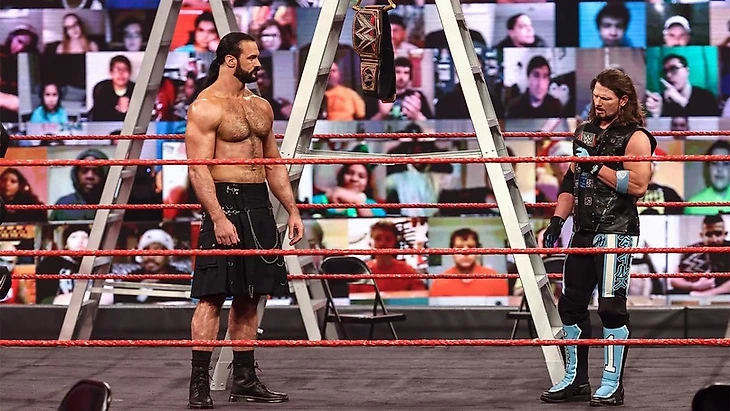 «Феноменальный» уже упомянул, как МакИнтайр лишился титула. И в тот момент Дрю понял, что раньше его целью было просто стать чемпионом WWE, однако теперь он знает, что хочет не просто стать, а оставаться чемпионом. ЭйДжею это должно быть знакомо, одно дело добраться до вершины, другое — удержаться на ней. Стайлз задал вопрос «Кто такой Дрю МакИнтайр?». Шотландец ответит: он чемпион. Чемпион, который тащил на себе WWE весь этот сложный год. Давление ему не мешает, напротив, Дрю заряжается от давления. Он настоящий бриллиант, и именно тот путь в 19 лет, который упомянул его визави, сделал МакИнтайра таким. Он разорвет ЭйДжея в воскресенье. Есть пословица: «каждый человек умирает, но не каждый перед этим по-настоящему живет». Так вот, Дрю на TLC сделает все возможное, чтобы остаться чемпионом WWE. И надеется, что претендент также выложится на полную. МакИнтайр повесил титул, его стали поднимать под свод арены. Внезапно заиграла пафосная музыка, ЭйДжей вновь стал задавать вопросы об уверенности оппонента в себе, как вдруг в ринг заскочили Миз и Моррисон, сбросив на шотландца лестницу. Втроем эти трое стали избивать чемпиона, Джон взял лестницу… и МакИнтайр отбился, выкинув Стайлза за пределы ринга и прописав по Claymore Мизу и Моррисону (второму с использованием лестницы). ЭйДжей вернулся в ринг, но только для того, чтобы получить хэдбатт. И его ждал Claymore, как вдруг Омос закинул в ринг ступеньки, чем отвлек Дрю и позволил Стайлзу провести чоп блок. Феноменальный локоть последовал, а потом Стайлз побил оппонента лестницей, стулом, впечатал его головой в стул, установленный в углу ринга. Наконец в ринге оказались стол и лестница. Дрю был уложен на стол, а «Феноменальный» полетел на него с лестница элбоу дропом, а потом забрался по лестнице, сорвал титул и отпраздновал свой локальный триумф, закрыв шоу.