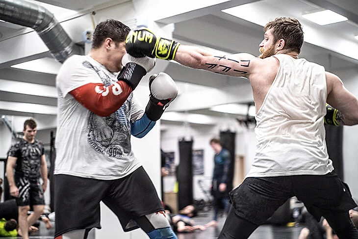 До определенного момента. Потому что главная ошибка – думать: если каждый день бегаю по 10 км, то 5-минутный раунд выстою легко. Нет, это совершенно другая работа, а в какой-то момент нужно перестроить организм – от монотонного цикла на взрывной. Работа в паре – другая. Там меня держат в напряжении, а я подстраиваюсь и отвечаю. Все это сжигает бензин в разы быстрее; когда я впервые столкнулся с таким, то очень сильно удивился.