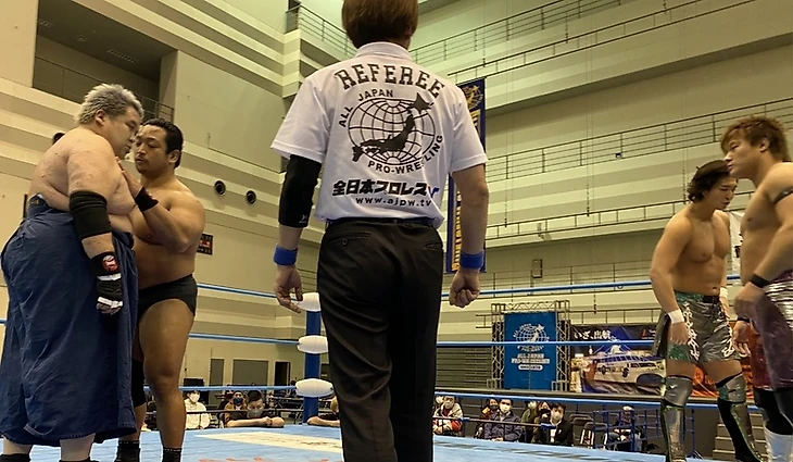 А вот это уже было прямо очень круто - один из тех матчей, которые могут спокойно возглавлять целые PPV. Команда молодых и дерзких против опытных и бывалых командных чемпионов - когда такие команды встречаются друг с другом, это уже должно быть априори захватывающим зрелищем, а если этому дают не только больший лимит времени, но и внятный букинг, украшающий обе стороны как сильные и неудержимые, голодные до побед - тут уже поединок становится если уж не бриллиантом, то хотя бы настоящим золотом. Все участники этого матча просто рвали друг друга и не собирались щадить кого-либо - ни самих себя, ни друг друга. Плюс к Мияхаре у Сувамы и Ишикавы были свои старые счёты - каждый из командных чемпионов AJPW имел свой должок за прошлое, когда Кенто лишал их возможности быть сильнейшими из нынешнего поколения, в бытность чемпионами Тройной Короны AJPW. История подобное помнит и это в итоге отражается в ярких тонах - был даже момент, когда Кенто остался один и Сувама с Ишикавой чуть было не уничтожили его. Если бы не помощь от ещё одного бывшего оппонента Кенто... его нынешнего командного партнёра, с которым у Мияхары сейчас перемирие ради общей цели. И данный матч также был своеобразной проверкой - ибо вдруг Кенто и Юма смогут добраться до самого конца и стать победителями турнира.